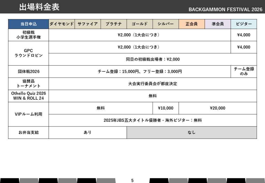 With no doubling cube used, you can enjoy games against many different opponents. The event is held over three days, but you are welcome to participate for just one day.